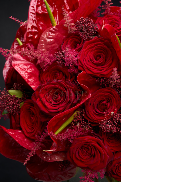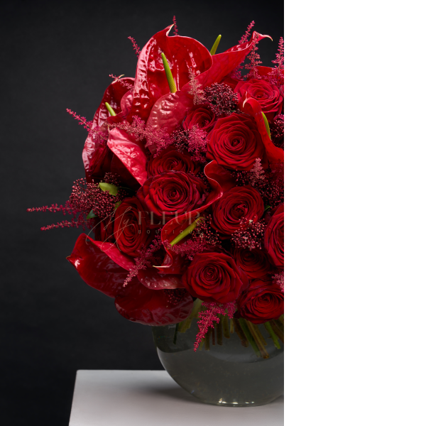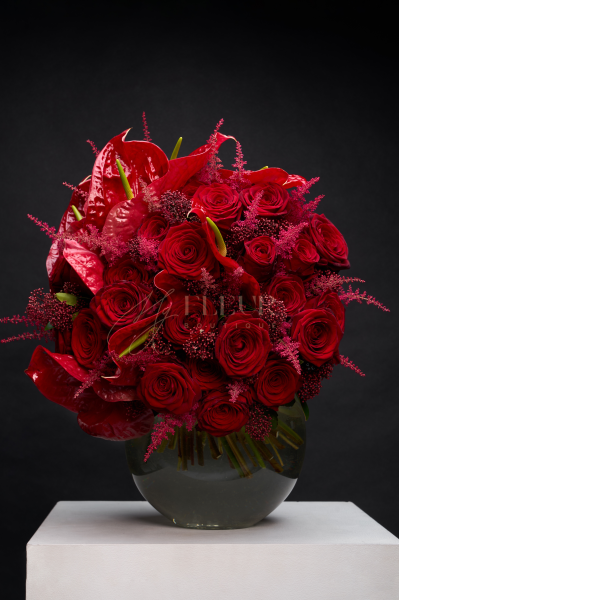 Introducing our "Passion of Love" flower arrangement, a fervent expression of deep affection. Immerse yourself in the rich allure of velvety red blooms that dance in an exquisite symphony, symbolizing the intensity of love. Each petal whispers tales of devotion, creating an ensemble that resonates with fiery passion. This arrangement, carefully curated for those deeply cherished, serves as a tangible testament to the profound emotions shared. Gift the "Passion of Love" to ignite the flame of romance and convey sentiments beyond words, as vibrant as the deepest hues of true love.